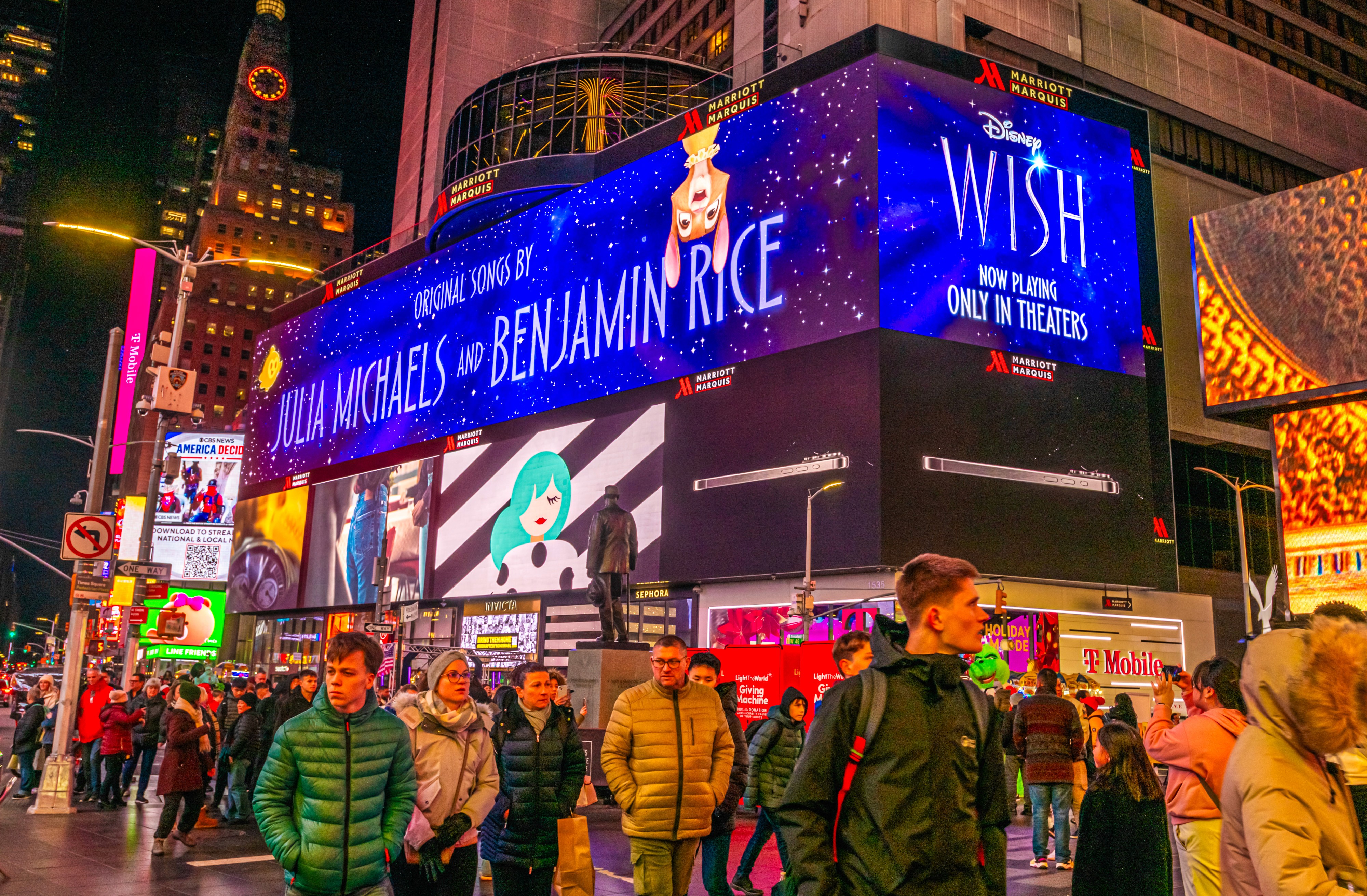The Times Square billboard for Disney's Wish captured the film’s magical essence. The dynamic display engaged viewers with its eye-catching visuals in one of the world’s most iconic advertising spaces